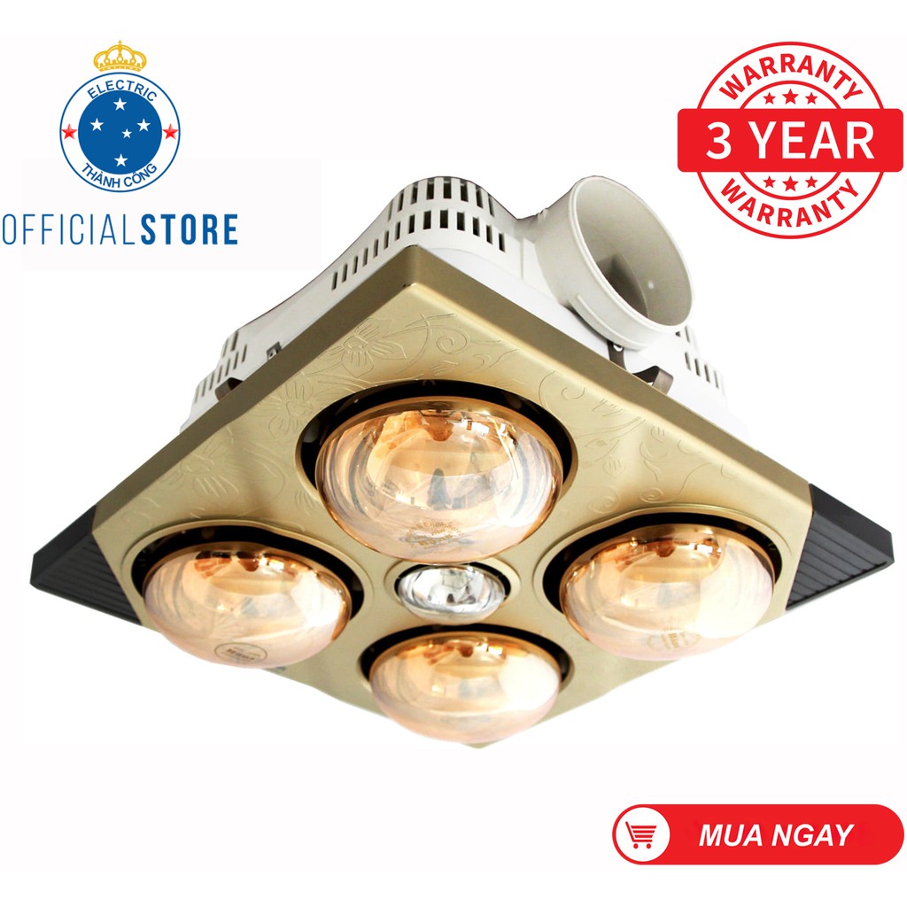 ☛ Thiết kế thời trang màu vàng kim với hoa văn cổ điển Châu Âu. Bề mặt bóng hồng ngoại tráng kim cương nhân tạo, có tác dụng bớt chói mắt và có độ ấm cao hơn những bóng thông thường (ấm hơn khoảng 10 độ C)☛ Sử dụng được cả 4 bóng sưởi khi thời tiết lạnh. Ngoài ra quạt thông gió và đèn chiếu sáng là 2 chức năng quan trọng được bổ sung nhằm nâng cao tiện ích sử cho người dùng.