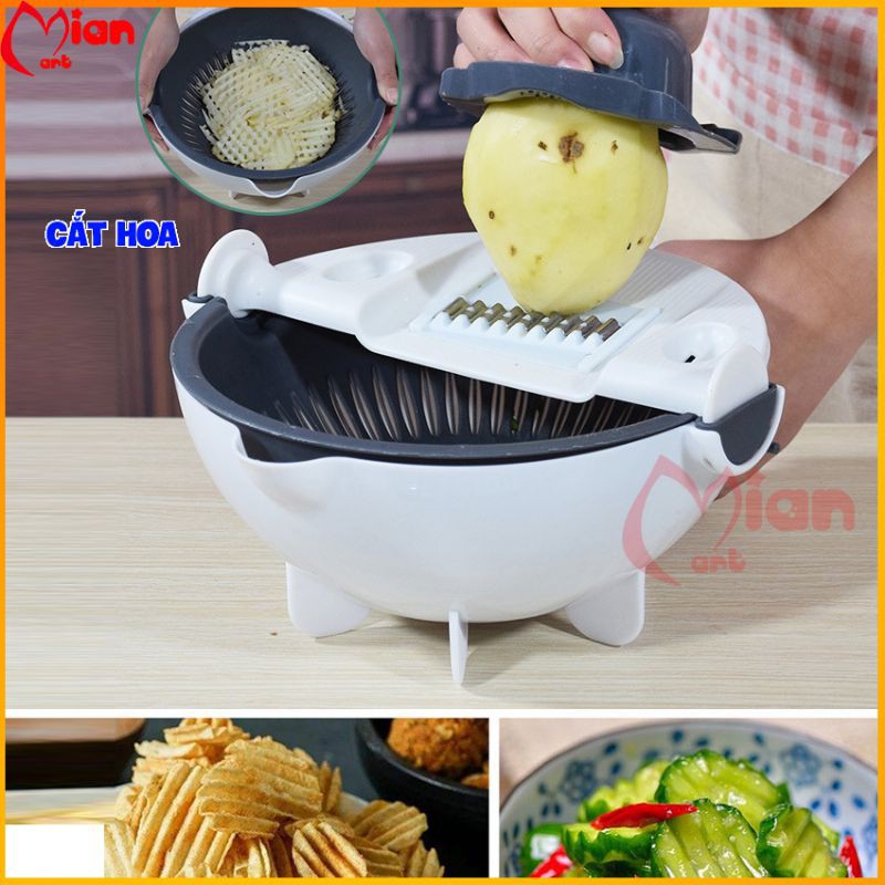 - Bộ dụng cụ nạo rau củ đa năng của MIAN Mart 12 chi tiết rất tiện dụng cho bạn. Bạn có thể cắt rau và sau đó làm sạch chúng trực tiếp thông qua một thiết bị thoát nước.