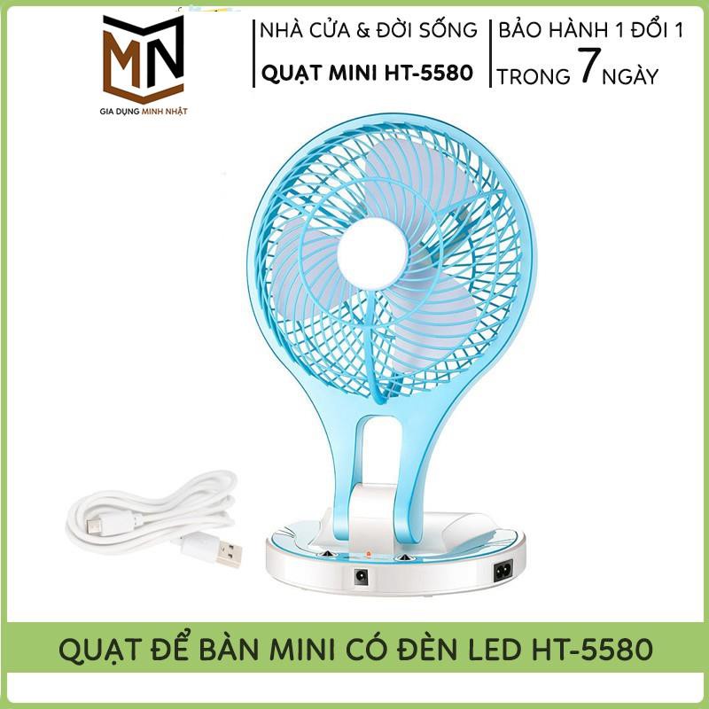 ️Bảo Hành 3 Tháng️ Quạt Mini Để Bàn Sạc Tích Điện Kèm Đèn Led Học Fan HT-5580, Mẫu Mới Nhất 2021