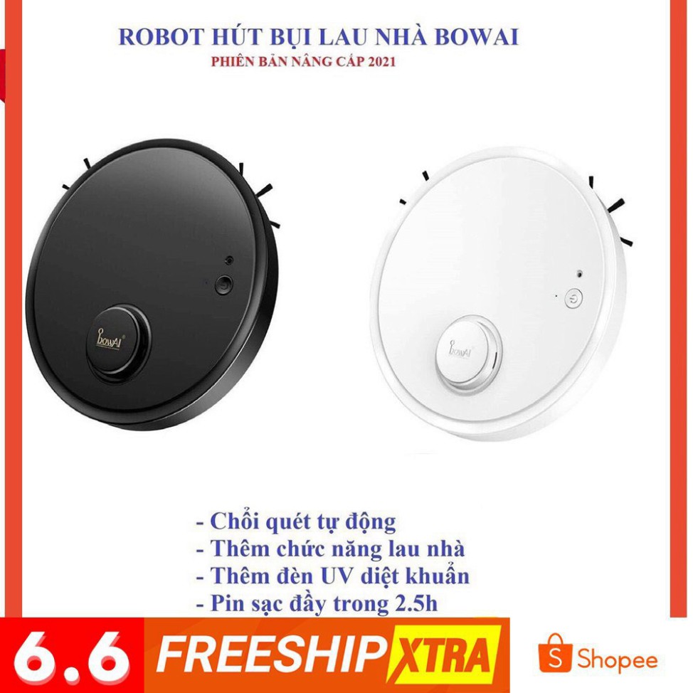 ( BẢO HÀNH 3 THÁNG) Robot Hút Bụi Lau Nhà Thông Minh Bowai Tự động quét nhà + hút bụi + lau nhà . .