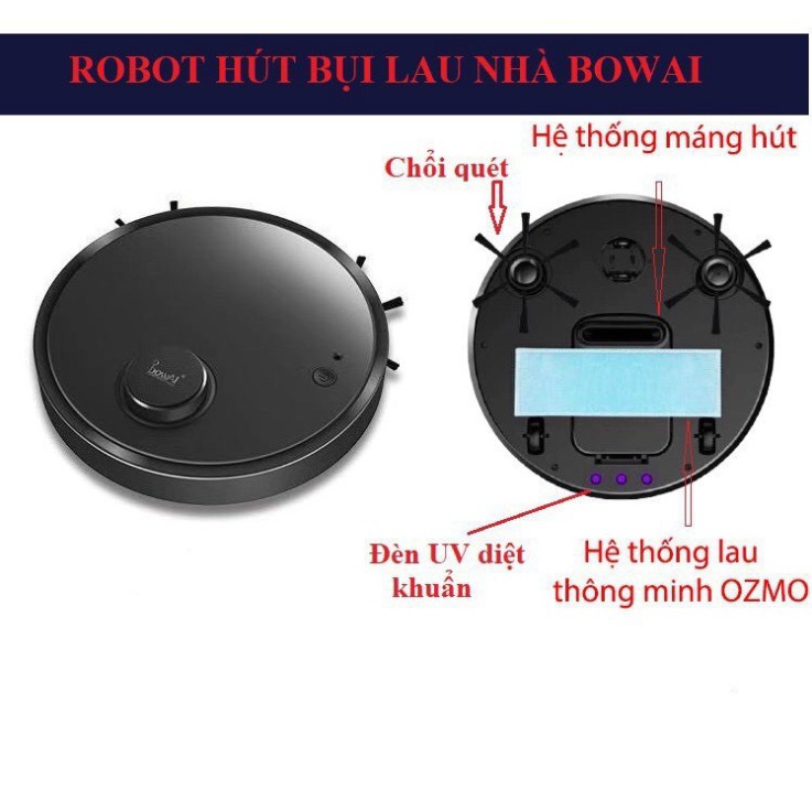 Giới thiệu ( BẢO HÀNH 3 THÁNG) Robot Hút Bụi Lau Nhà Thông Minh Bowai Tự động quét nhà + hút bụi + lau nhà