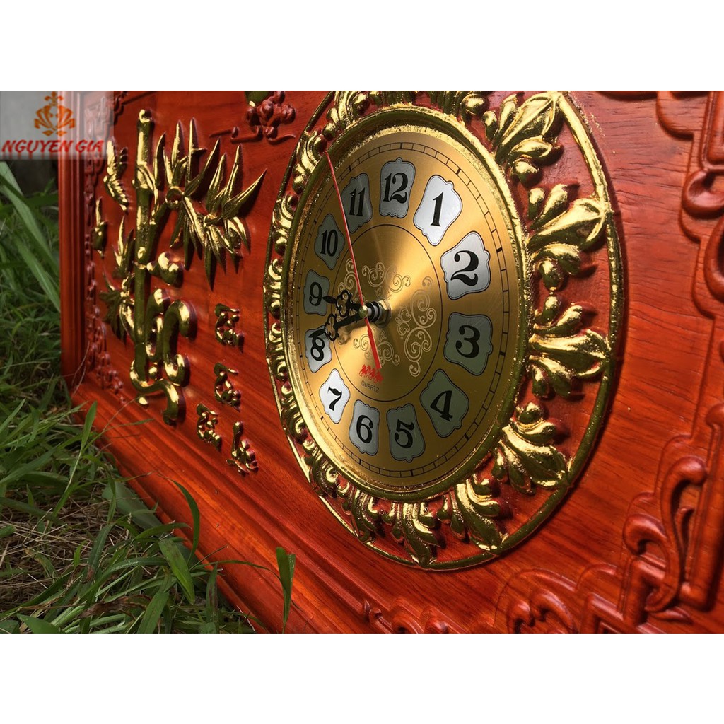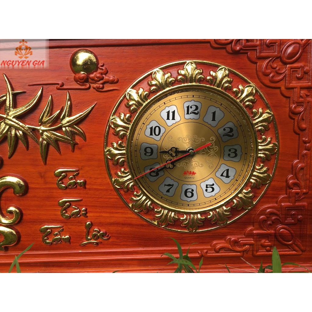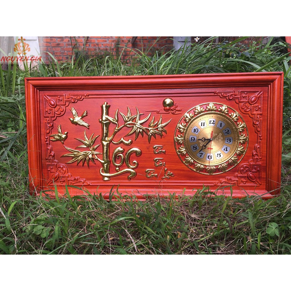 [Bảo hành 36 tháng] Đồng hồ treo tường mẫu Lộc Trúc bằng gỗ hương