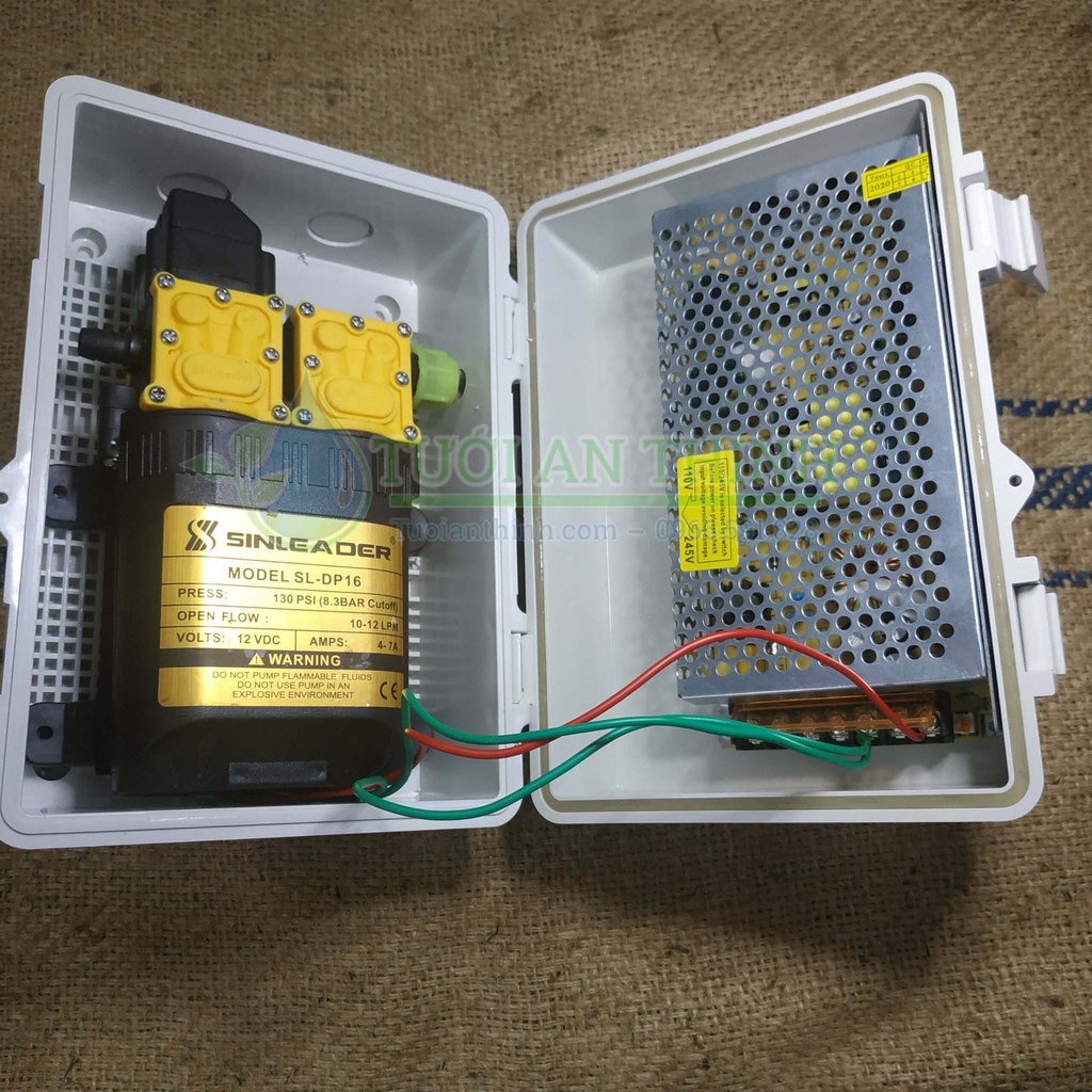 Giới thiệu [BẢO HÀNH 6 THÁNG] Máy bơm nước áp lực Đôi Sinleader kèm Nguồn gắn sẵn Hộp điện chống nước (nguồn mới) )