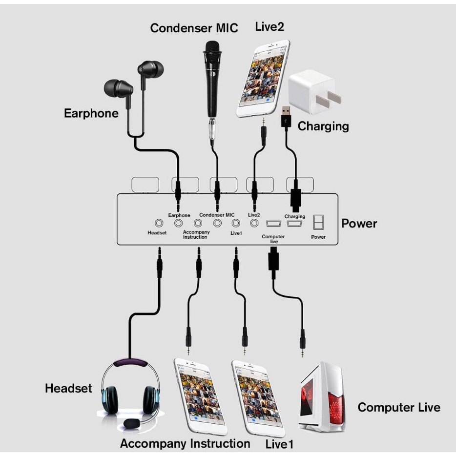 - Một đặc điểm nổi trội ở sound card v10 mà tôi khá thích đó là các bạn có thể dùng ngay chiếc tai nghe nhạc hàng ngày của mình để hát livestream, karaoke mà không cần mua thêm micro thu âm. V10 cho chất lượng âm thanh khi hát qua micro tai nghe khá tốt và chất lượng. Dĩ nhiên nếu điều kiện kinh tế cho phép thì các bạn nên kết hợp sound card v10 với micro thu âm BM-900 livestream chuyên dụng, để hát âm thanh sẽ được chất lượng và chuyên nghiệp hơn. Các bạn có thể kết hợp v10 với các dòng micro thu âm livestream phổ biến hiện này như micro thu âm bm900, micro thu âm pc k200, micro thu âm pc k320, micro thu âm isk at100, micro thu âm at2020…
