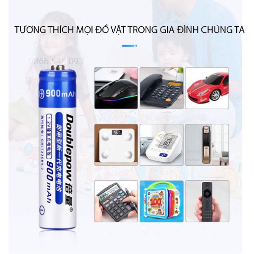 [Có bảo hành] Bộ 4 pin sạc AAA900mAh chính hãng Doublepow Cam Kết Dung Lượng Thật