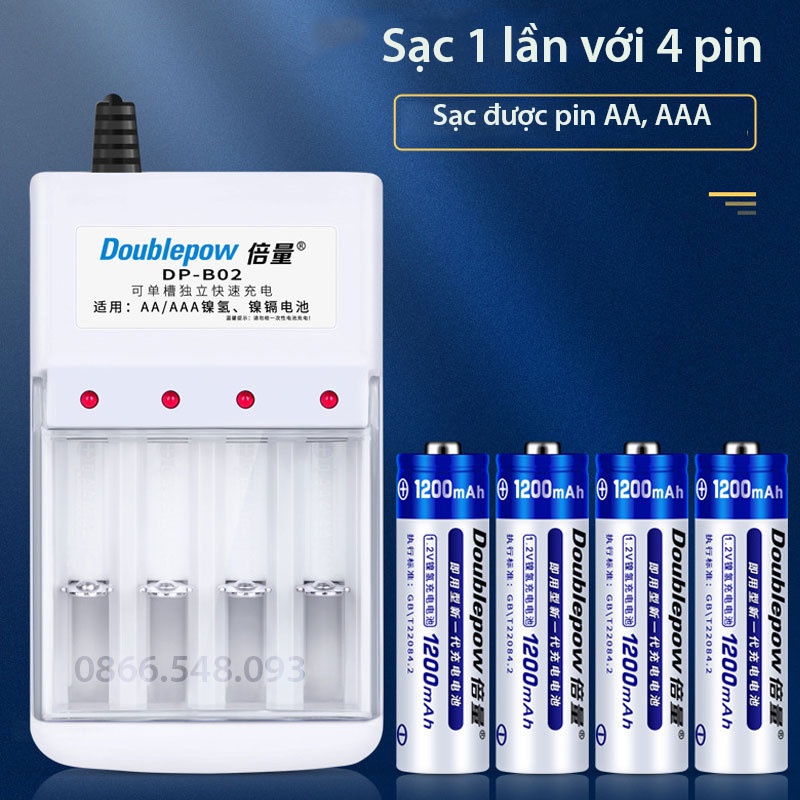 [Có bảo hành] Bộ sạc pin tiểu DP-B02 đa năng AA, AAA tặng hộp 4 viên pin AA1200