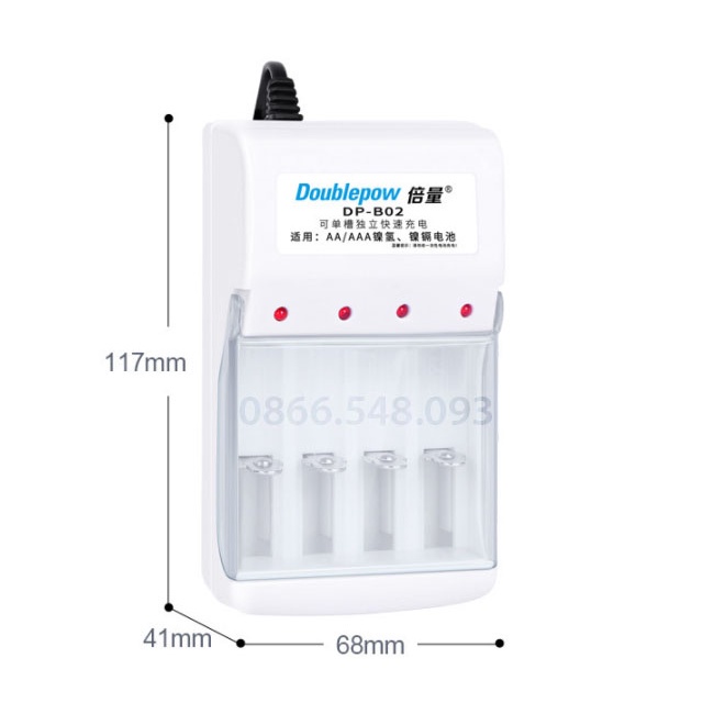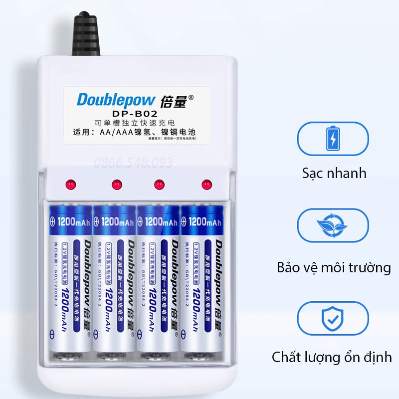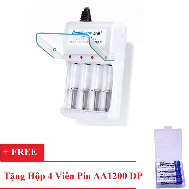 Giới thiệu [Có bảo hành] Bộ sạc pin tiểu DP-B02 đa năng AA, AAA tặng hộp 4 viên pin AA1200