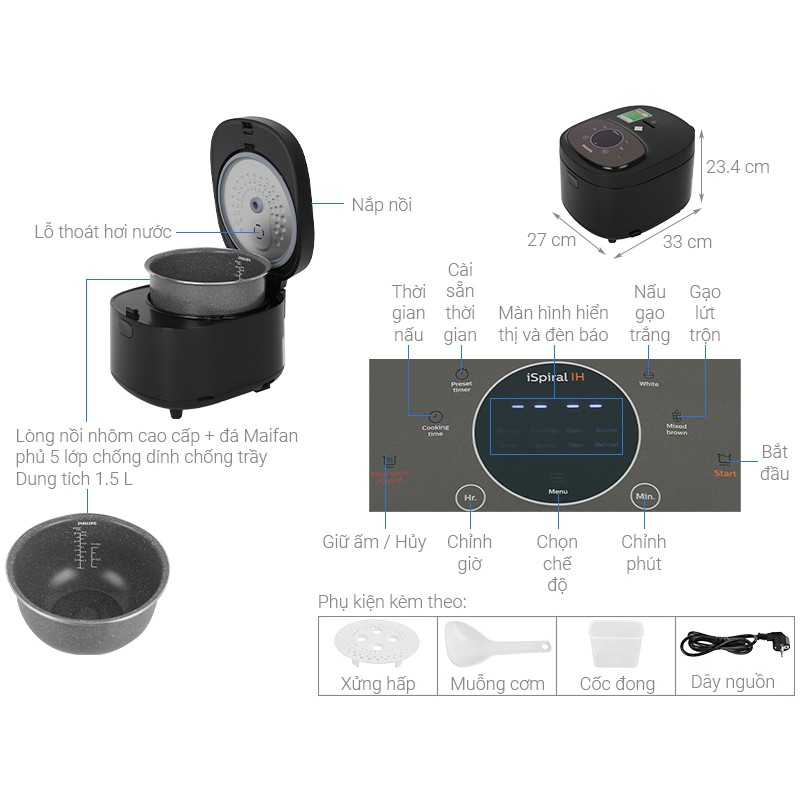 Thiết Bị Điện Gia Dụng > Đồ gia dụng nhà bếp > Nồi cơm điện || Bảo hành chính hãng - Nồi cơm điện cao tần IH iSpiral Philips HD4528Còn hàng