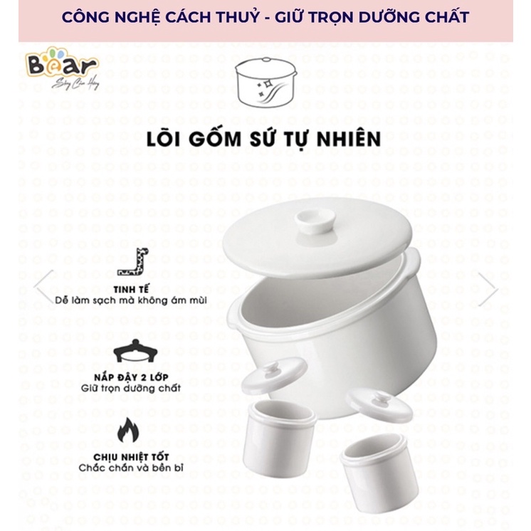 (Bảo Hành Chính Hãng)Nồi Nấu Cháo Bear Cho Bé, Nồi Hầm Xương Tiện Dụng - 0,8L- Cửa tiệm dưa hấu