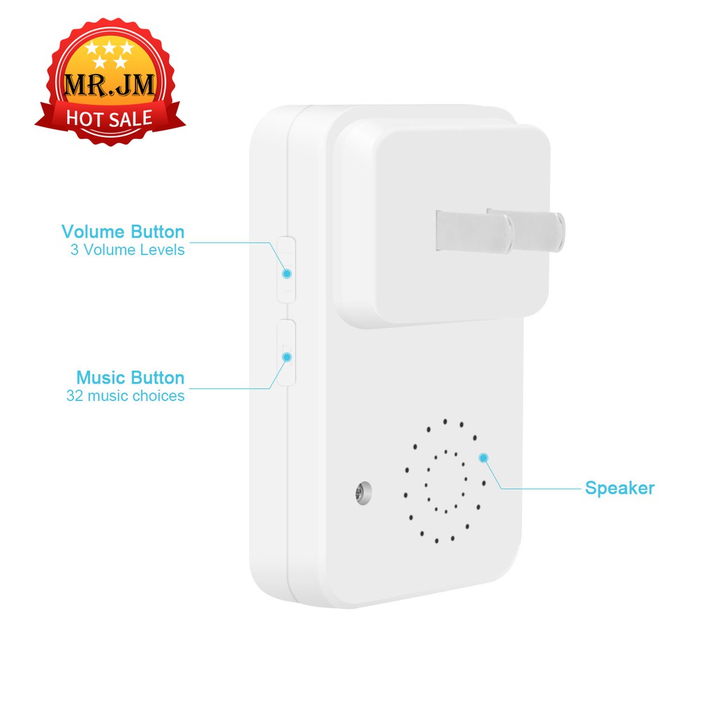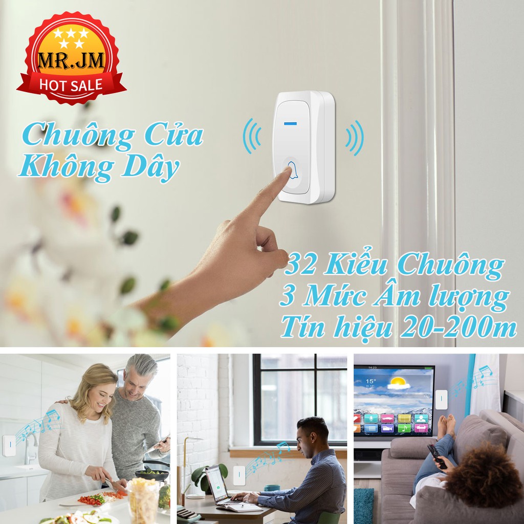 [ Bảo Hành ] Chuông Cửa Không Dây 32 Kiểu Chuông 3 Mức Âm Lượng Khoảng Cách Tín hiệu lên tới 200 mét Nút Ấn Chống Nước