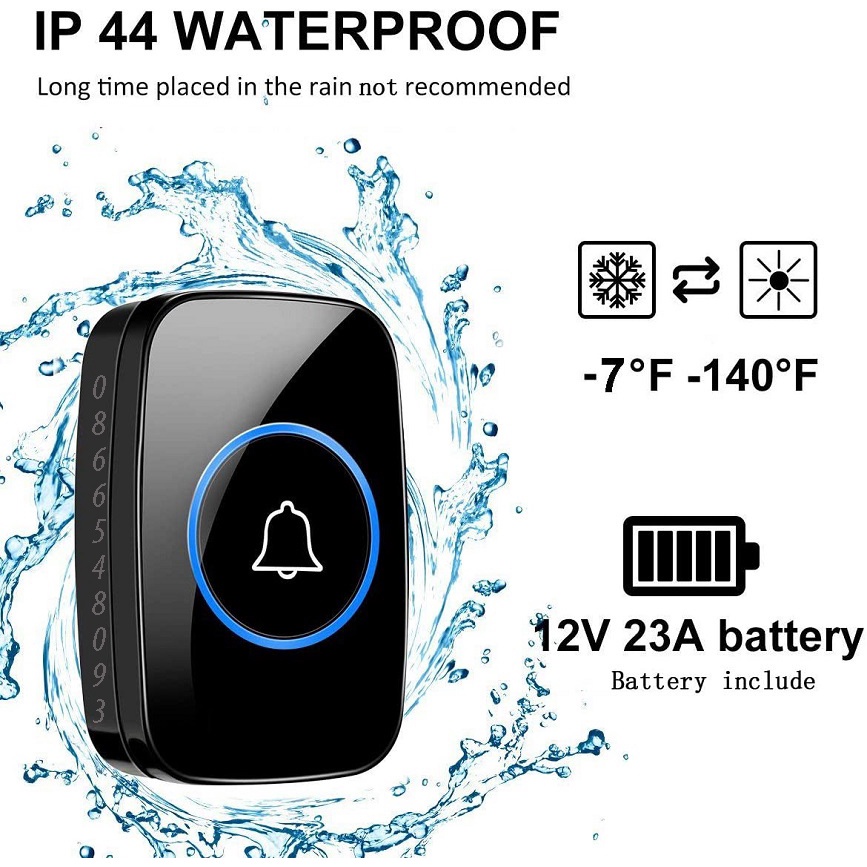 ☑ Cục phát sóng cực tốt: Tiêu thụ điện năng cực thấp; sử dụng pin kiềm 23a12v có tuổi thọ tối đa 2 năm; IP44 chống bụi và chống thấm nước; nhiệt độ làm việc dao động từ -4 ° F-140 ° F, chịu được các điều kiện thời tiết khắc nghiệt khác nhau.