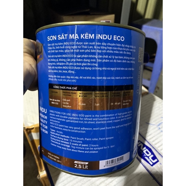 Giới thiệu { Bảo hành ko bong tróc} Sơn sắt mạ kẽm indu hộp 2,5 lit chính hãng