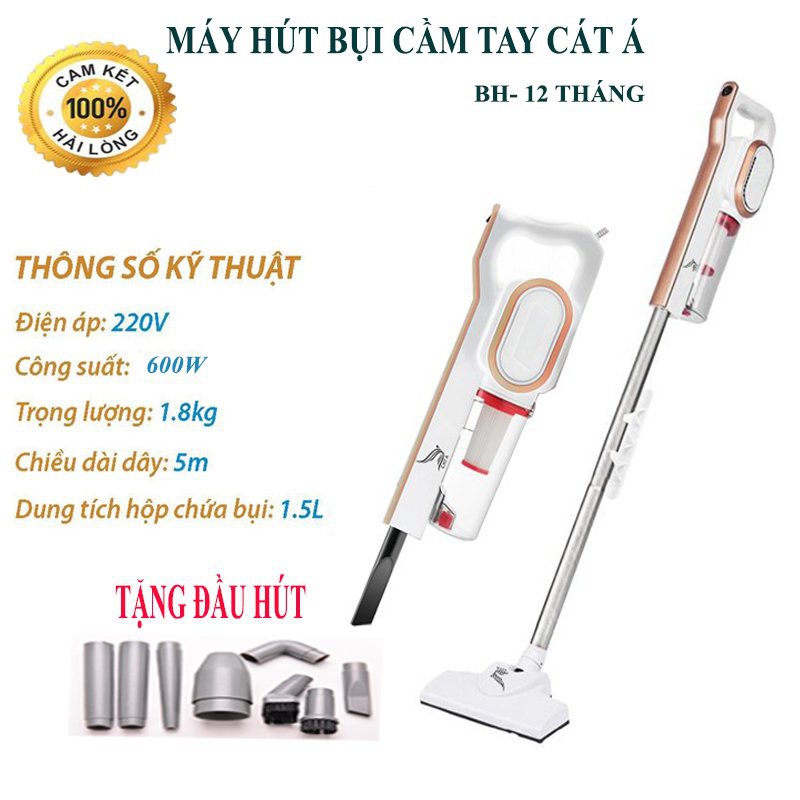 Máy hút bụi gia đình cầm tay 2 trong 1 công suất 600W bộ lọc HEPA Tặng kèm 9 đầu Hút✅ ✅ Máy hút bụi gia đình Cầm Tay 2 trong 1 CÁT Á có công suất hút bụi mạnh mẽ, đi kèm với nhiều đầu hút để bạn lựa chọn phù hợp với bề mặt làm sạch. Máy hút bụi CÁT Á là một chuyên gia hút các loại bụi khô trên mọi bề mặt như: bề mặt gỗ, bề mặt vải, ghế sofa, ghế ô tô, mọi ngóc ngánh trong nhà.......