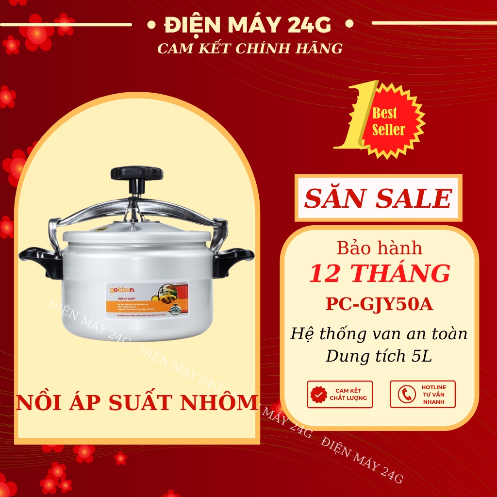 Thiết Bị Điện Gia Dụng > Đồ gia dụng nhà bếp > Nồi áp suất || [BẢO HÀNH] Nồi áp suất nhôm Goldsun ĐH Mềm PC-GJY50A, dung tích 5LCòn hàng