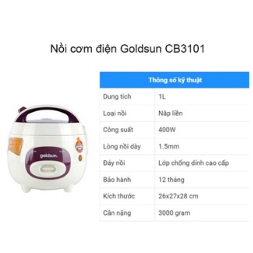 Nồi cơm điện Goldsun CB3101 nồi cơm mini 1L tiện lợi cho gia đình nhỏ lòng nối 3 lớp chống dính cao cấp hàng chính hãng