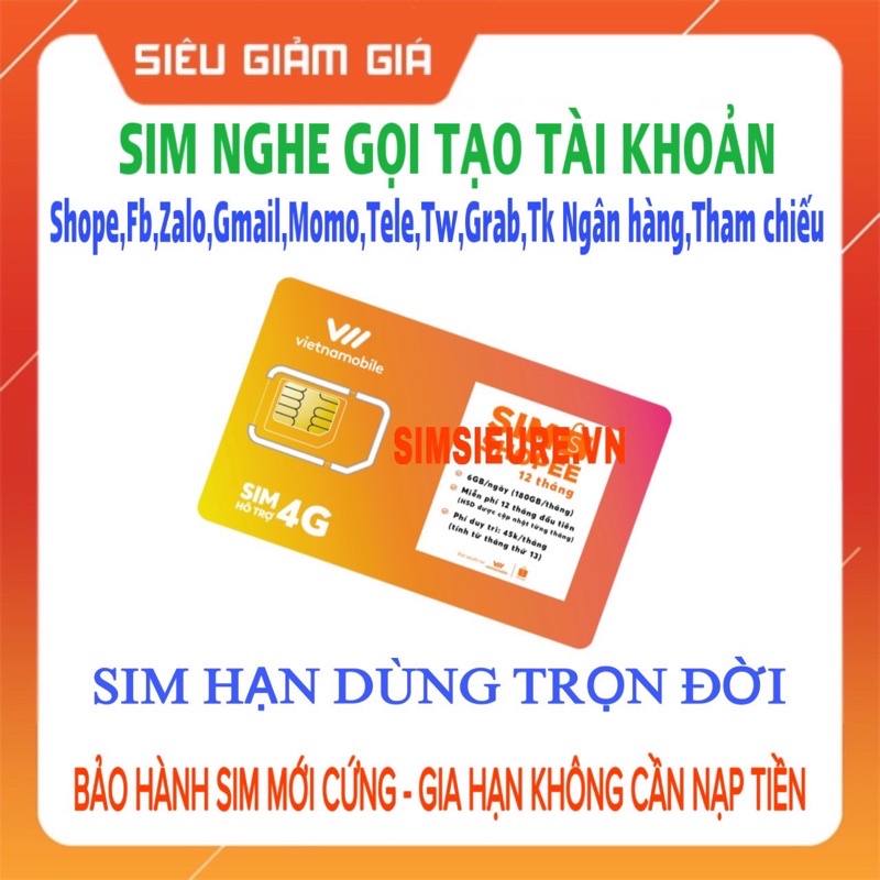 [ Bảo Hành Sim Mới Cứng ] Sim nghe gọi tạo tài khoản Shope,Fb,Zalo,Sen,Lad,Momo.