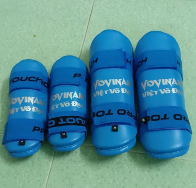 Bảo hộ tay chân vovinam 2 màu xanh đỏ được sử dụng trong tập luyện và thi đấu đối kháng môn võ vovinam.Sản phẩm được may bằng da cao cấp, thun dày, chắc chắn để hỗ trợ các võ sinh, huấn luyện viên trong quá trình tập luyện và thi đấu.