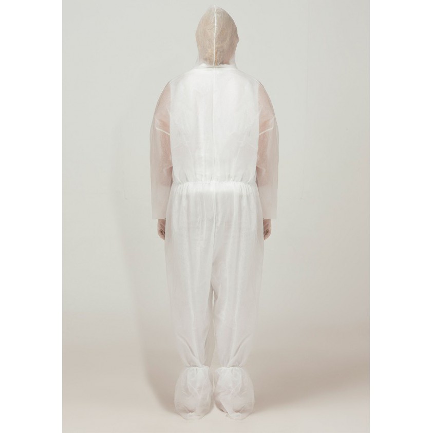 Bộ đồ được may bằng chất liệu vải không dệt giúp ngăn được cả những hạt bụi nhỏ kích thước lớn hơn 0,1 micromet. Chất liệu mỏng, thoải mái dễ sử dụng, dễ phân hủy thân thiện với môi trường.