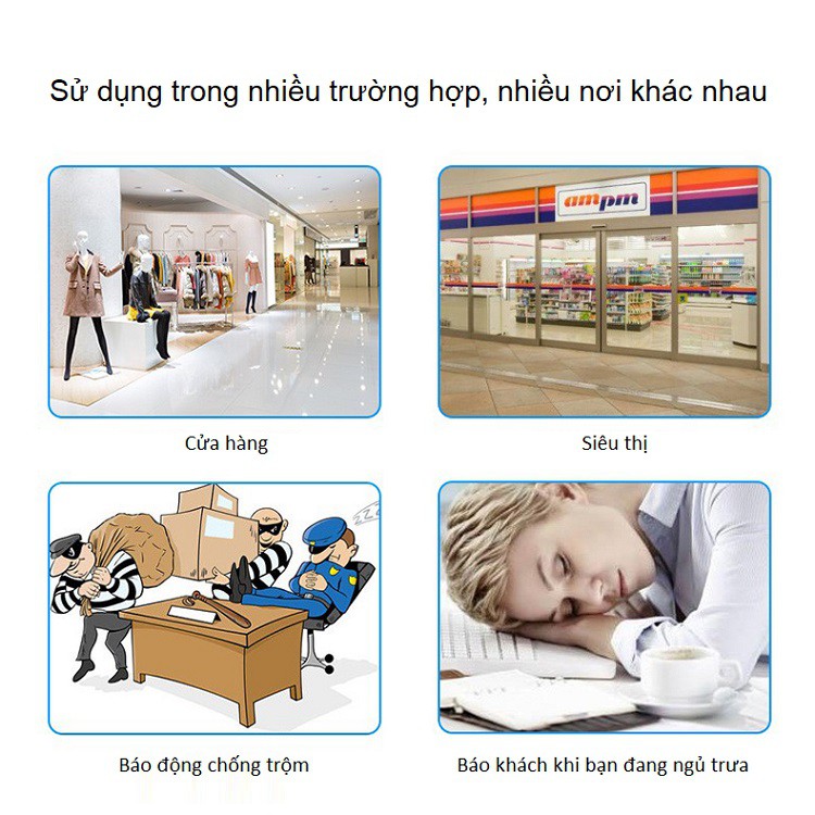 ✔️ Báo động chống trộm: Phát ra âm thanh báo động có mức cường độ âm khoảng 90dB khi có trộm bước vào nhà/cửa hàng