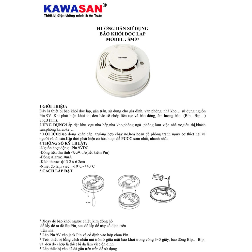 Thiết Bị Điện Gia Dụng > Mạch điện & Phụ tùng > Thiết bị báo động nhà ở || BÁO KHÓI ĐỘC LẬP SM07 KAWASANCòn hàng