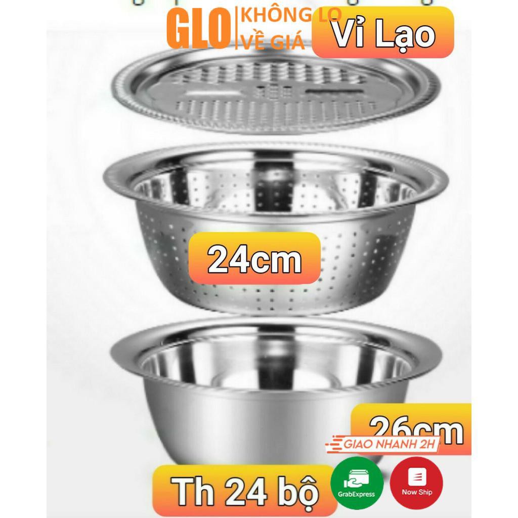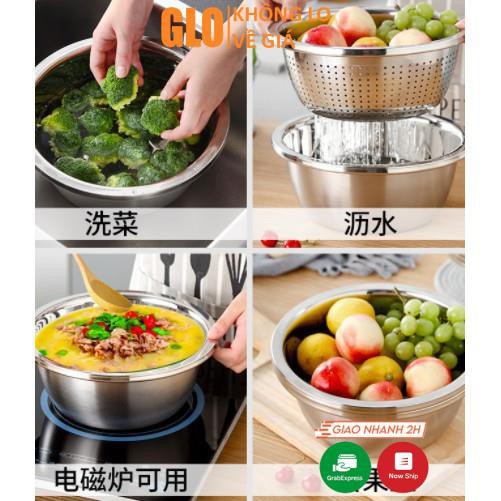 Bộ bao gồm : 01 Mặt nạo nhiều kiểu, 01 Rổ inox, 01 Chậu inox 100% cao cấp dày dặn