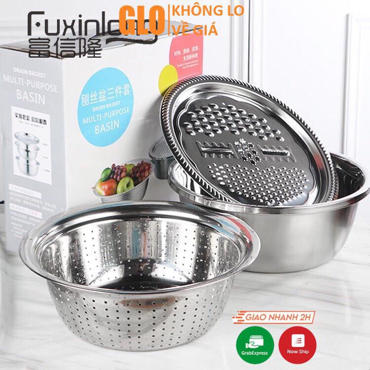 Bộ Bào Nạo Rau Củ 3 Món Kiêm Rổ Và Chậu Inox 304 Cao Cấp Đa Năng Hàng Nhập Khẩu