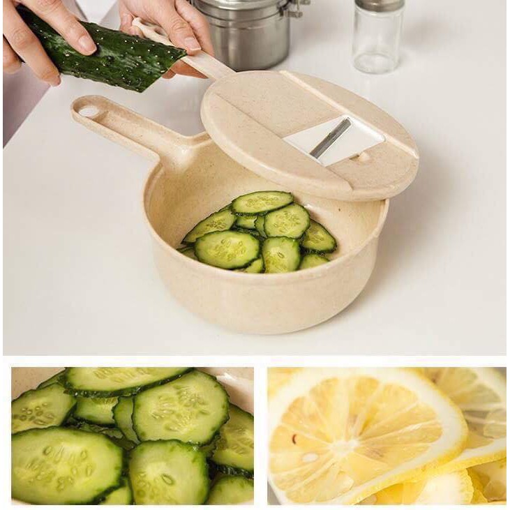 Tiện nữa là nó có rổ chậu bên dưới, thái ra là sạch sẽ gọn gàng k rây bẩn, có luôn cả cán cầm để tránh đứt