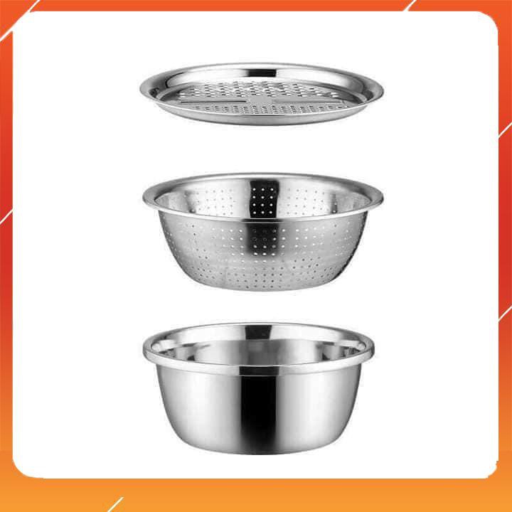 Nhà cửa & Đời sống > Dụng cụ nhà bếp > Bàn nạo, dụng cụ bào, cắt || Bộ Bào Nạo Rau Củ INOX Đa Năng 3 Trong 1 Kiêm Rổ Và Chậu Cao CấpCòn hàng