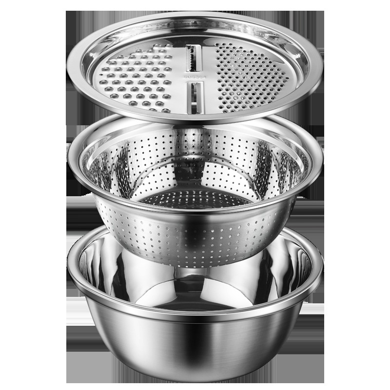 Nhà cửa & Đời sống > Dụng cụ nhà bếp > Bàn nạo, dụng cụ bào, cắt || Bộ bào nạo rau củ kiêm rổ và chậu Inox cao cấpCòn hàng