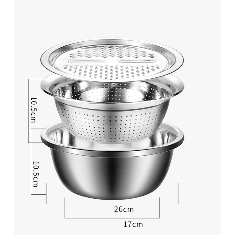 ✅Bộ bào nạo rau củ kiêm rổ và chậu Inox Cao cấp đa năng phi 26cm
