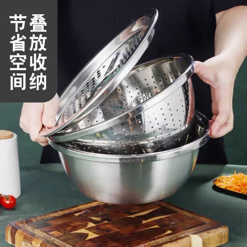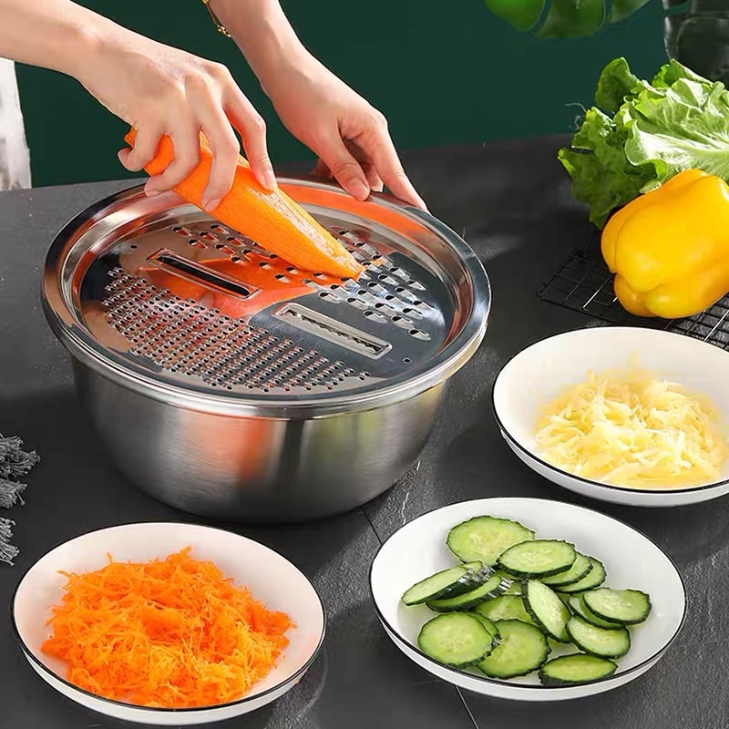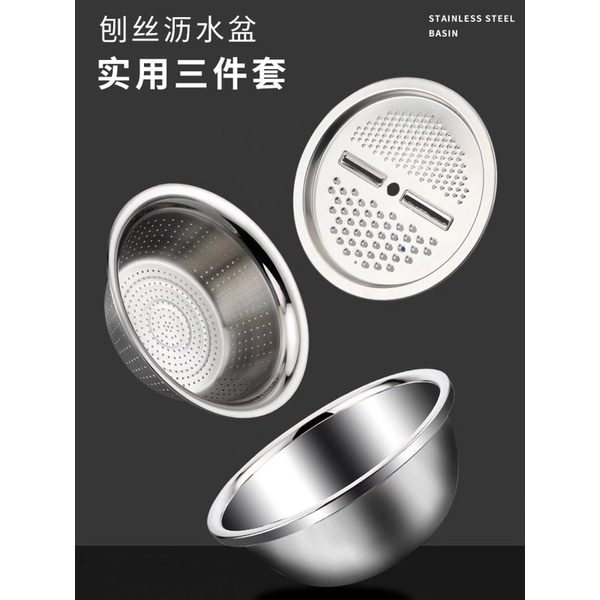 Bộ Bào Nạo Rau Củ Kiêm Rổ Và Chậu Inox Cao Cấp Đa Năng 3 Chi Tiết