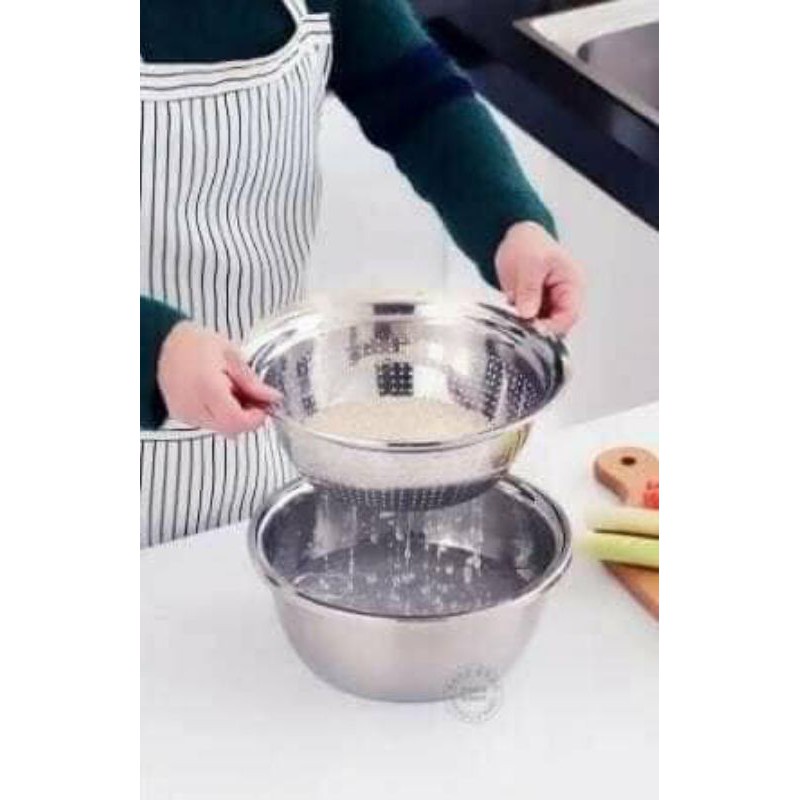 CHỨC NĂNG: Bộ thau rổ bào rau củ đa năng 3 món Inox 304 bên đẹp không rỉ