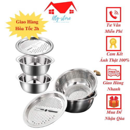 Nhà cửa & Đời sống > Dụng cụ nhà bếp > Bàn nạo, dụng cụ bào, cắt || Bộ bào nạo rau củ quả 3 trong 1 bộ bào nạo rau củ quả kiêm rổ chậu inox 304Còn hàng