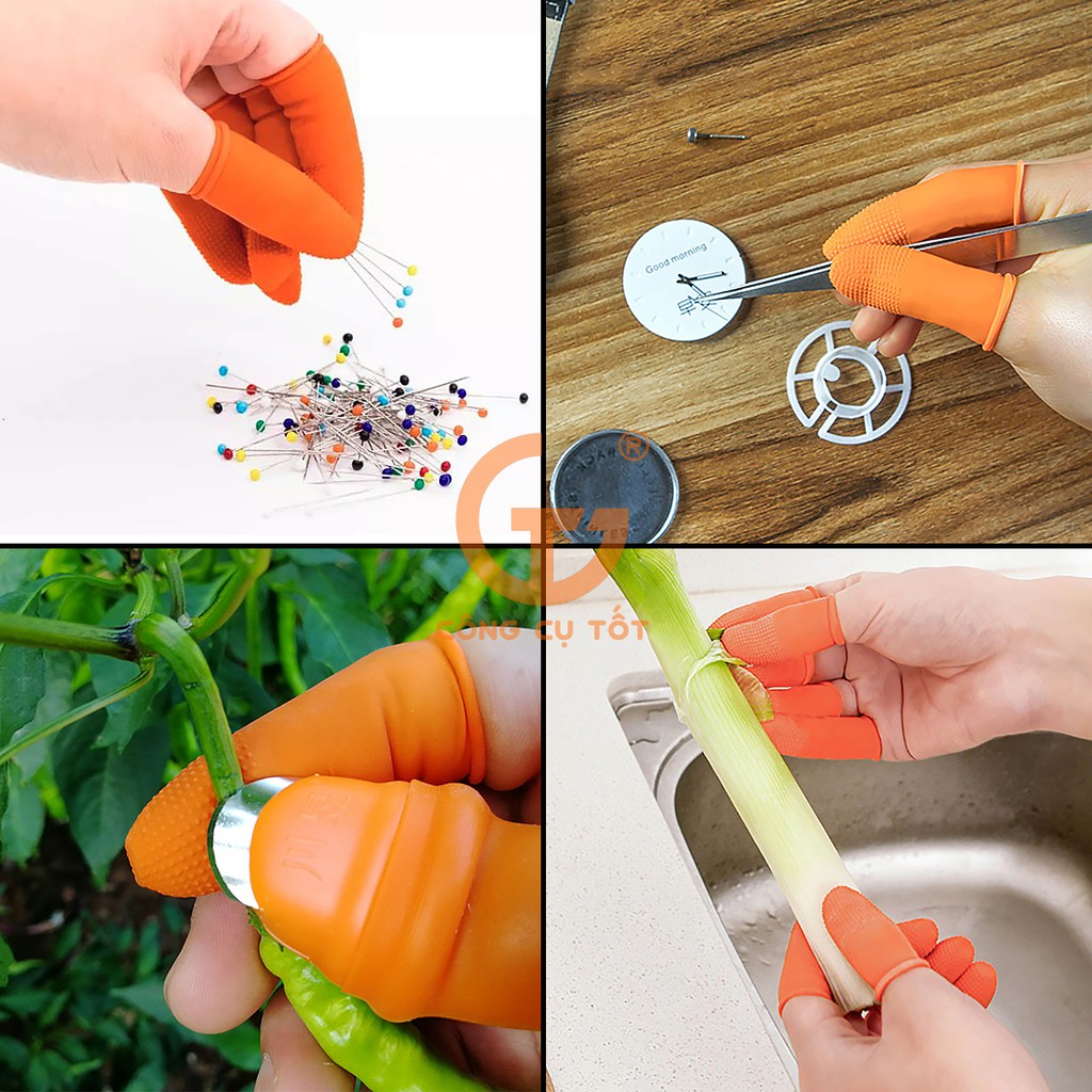 chất liệu cao su tổng hợp, đàn hồi tốt, ôm chặt lấy ngón tay người dùng, không gây kích ứng daKết cấu hạt sần ở đầu bao ngón gia tăng mức độ ma sát và khả năng bám dính khi cầm nắm đồ vật, dụng