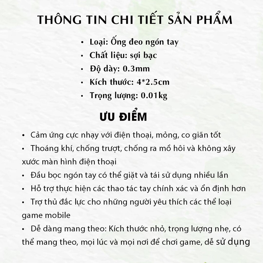 Bao ngón tay chơi game điện thoại bọc ngón tay cảm ứng thoáng khí chống mồ hôi không trầy xước giá rẻThông tin chi tiết sản phẩm bọc ngón tay chơi game: