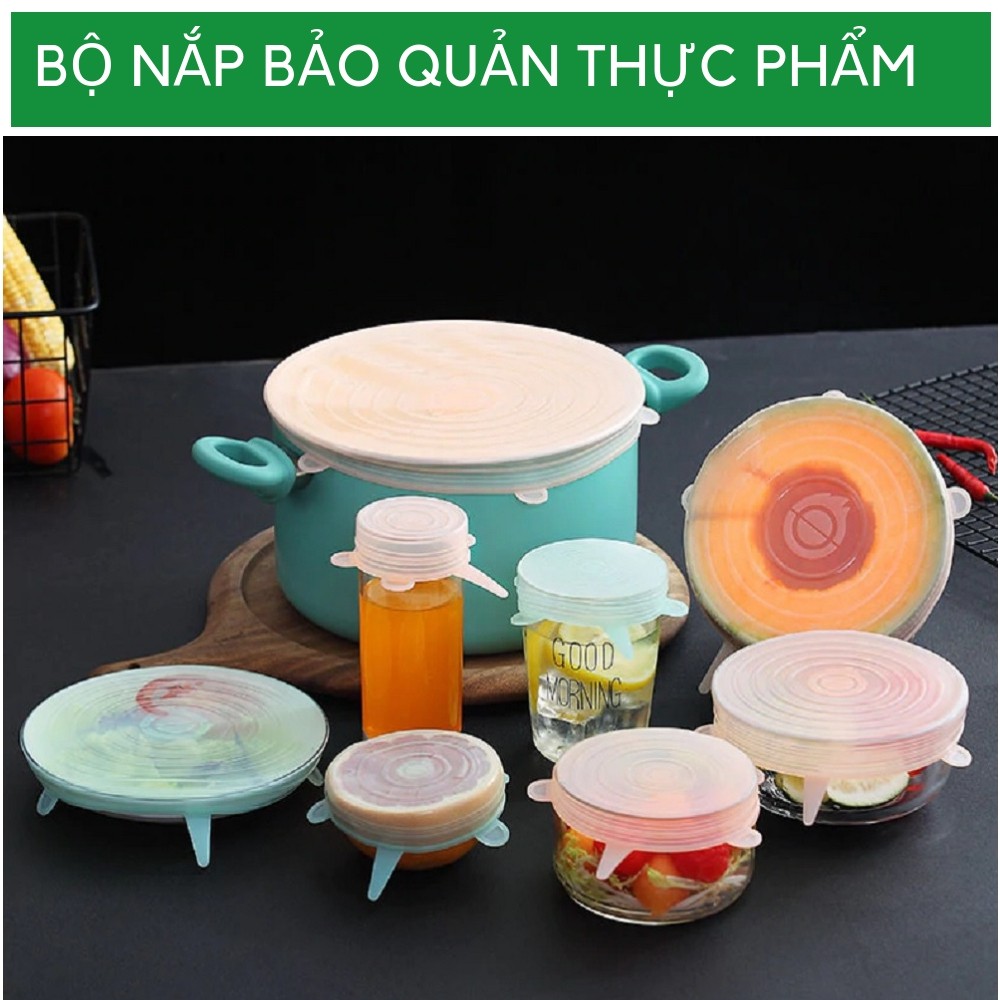 Bảo quản thực phẩm Bộ 6 nắp Silicone siêu dai dùng nhiều lần