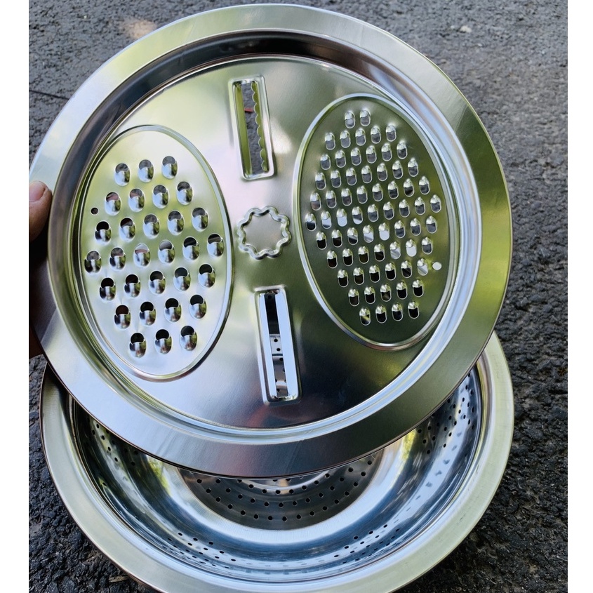 CHI TIẾT: Bộ gồm 1 chậu inox 100% cao cấp, dày dặn, 1 rổ inox, 1 mâm để nạo, gọt nhiều kiểu