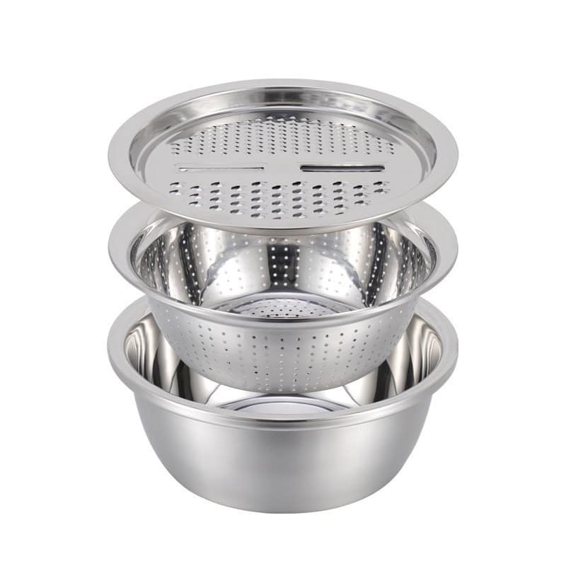 Thấu hiểu nhu cầu của bà nội trợ trong "sứ mệnh" vô cùng thiêng liêng trong mỗi bữa ăn, chúng tôi đã nhập khẩu về bộ rổ inox đa năng, 3 chi tiết, vừa làm RỔ, vừa làm CHẬU, vừa làm MÂM NẠO, GỌT, THÁI LÁT rau, củ, quả chuyên nghiệp đa năng, làm cho món ăn vô cùng đẹp mắt đồng thời tiết kiệm diện tích bếp.
