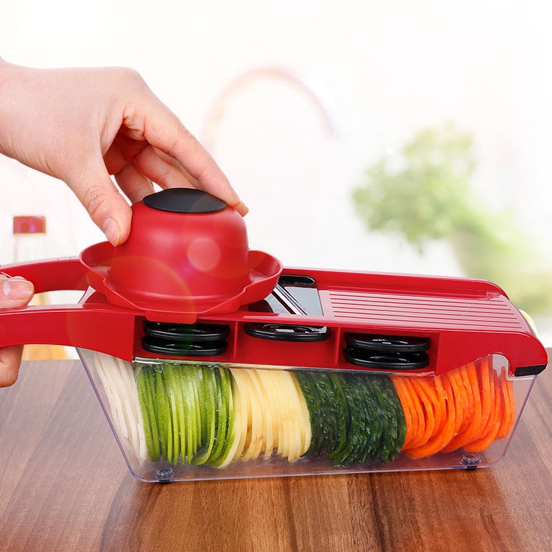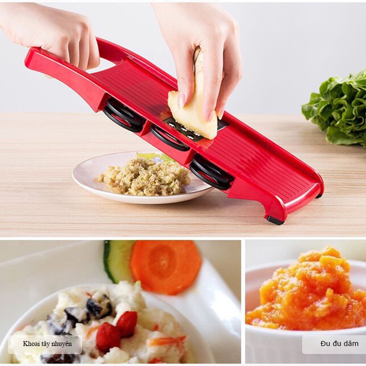 Các mẹ có thể dùng để cắt lát khoai tây, cắt lát bí ngòi, chuối xanh, bí đao, su su, đu đủ, cà rốt...