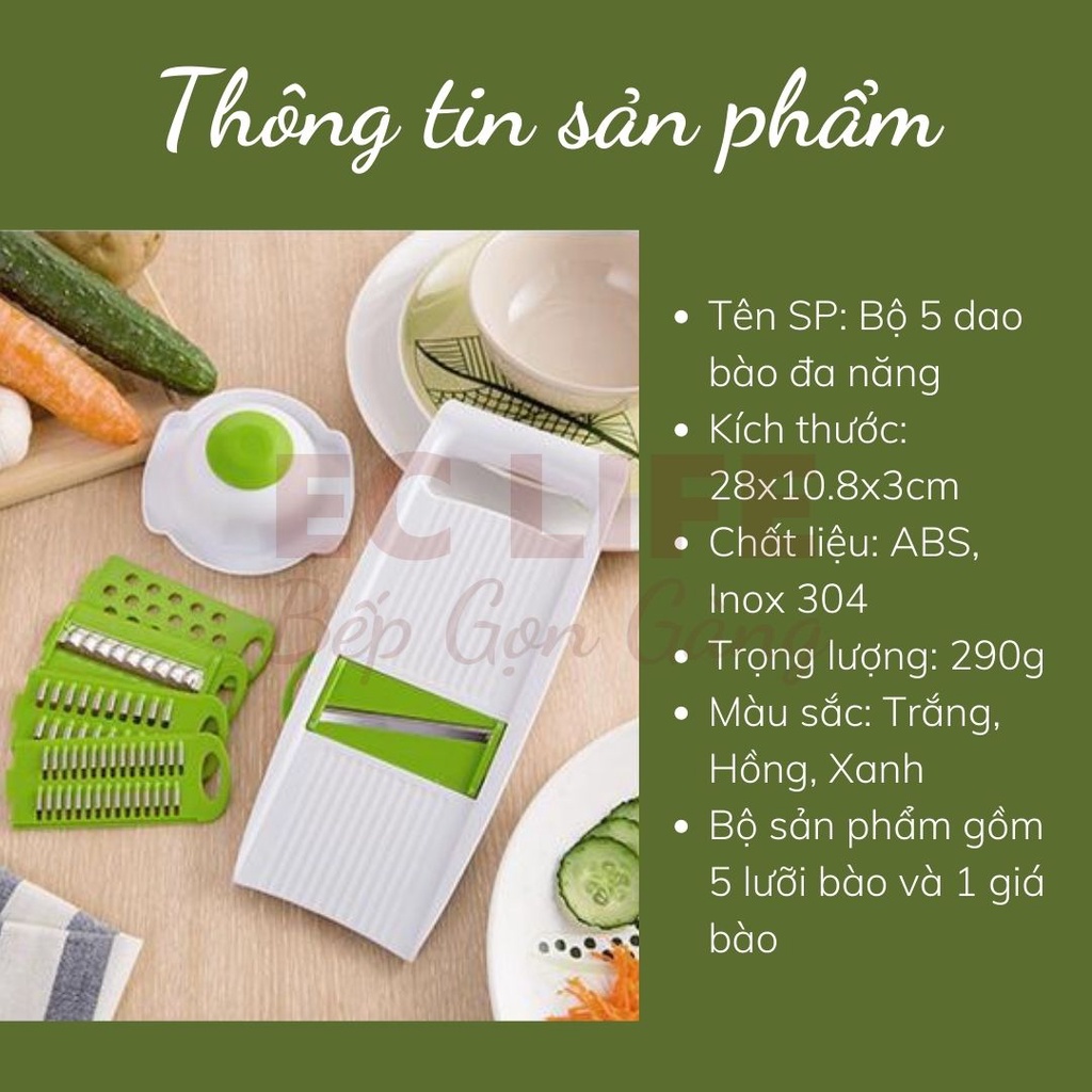 Nhà cửa & Đời sống > Dụng cụ nhà bếp > Bàn nạo, dụng cụ bào, cắt || Bộ bào rau củ đa năng 5 trong 1 kèm lưỡi dao thay thế linh hoạt tiện dụng EC Life 0902Còn hàng