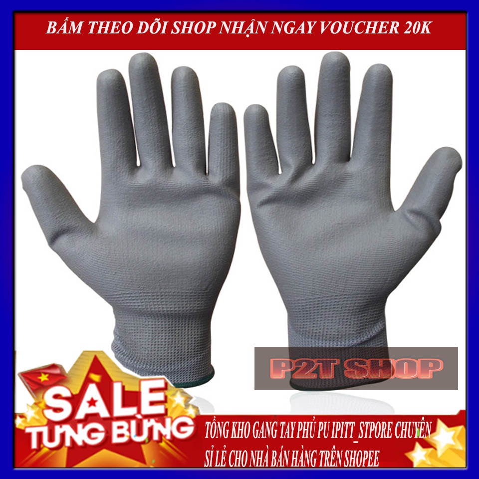 [BAO RẺ-BAO CHẤT LƯỢNG] COMBO 1 lố(12đôi) Găng tay bảo hộ lòng bàn tay Xám - Phủ PU lòng bàn tay