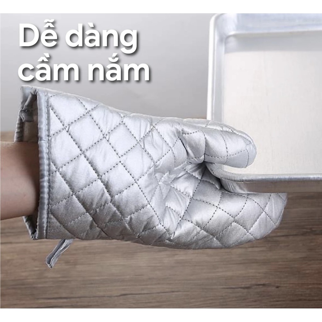 - Găng tay nhà bếp với thiết kế tiện dụng, là sản phẩm hữu ích cho công việc nội trợ của bạn hằng ngày. Với đôi găng tay này, bạn không cần phải lo sợ những chiếc nồi, xoong, chảo, hay những đồ vật vừa mới lấy ra từ lò vi sóng hoặc đang nấu trên bếp sẽ làm bạn bị phỏng nữa.