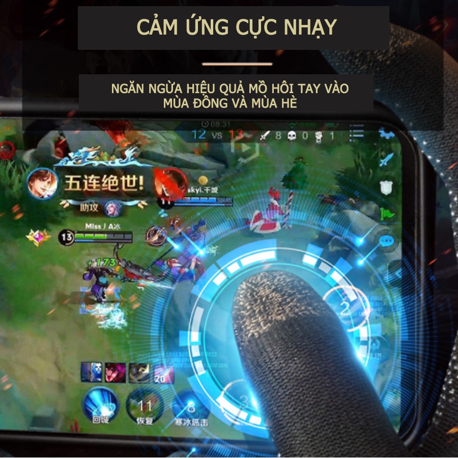 Mồ hôi tay khiến bạn gặp không ít phiền toái khi chơi Game Mobile?Vấn đề sẽ được giải quyết với bộ bao tay chơi game Free Fire thiết kế với chất liệu đặc biệt để có thể dẫn truyền cảm ứng theo cơ chế như ngón tay người. Với công nghệ chống trượt Anti-slip trong sợi vải Elastic Fabric dễ dàng co giãn tạo sự thoải mái khi trang bị. Bộ bao tay cả bàn chuyên dụng này sẽ là cứu cánh cho các "game thủ" game mobile bị ra mồ hôi tay.