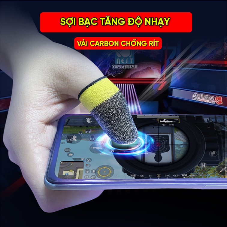 Gaming & Console > Phụ kiện console || Bao tay chơi game ff 2 ngón Glory vàng đen vải carbon sợi bạc cao cấpCòn hàng