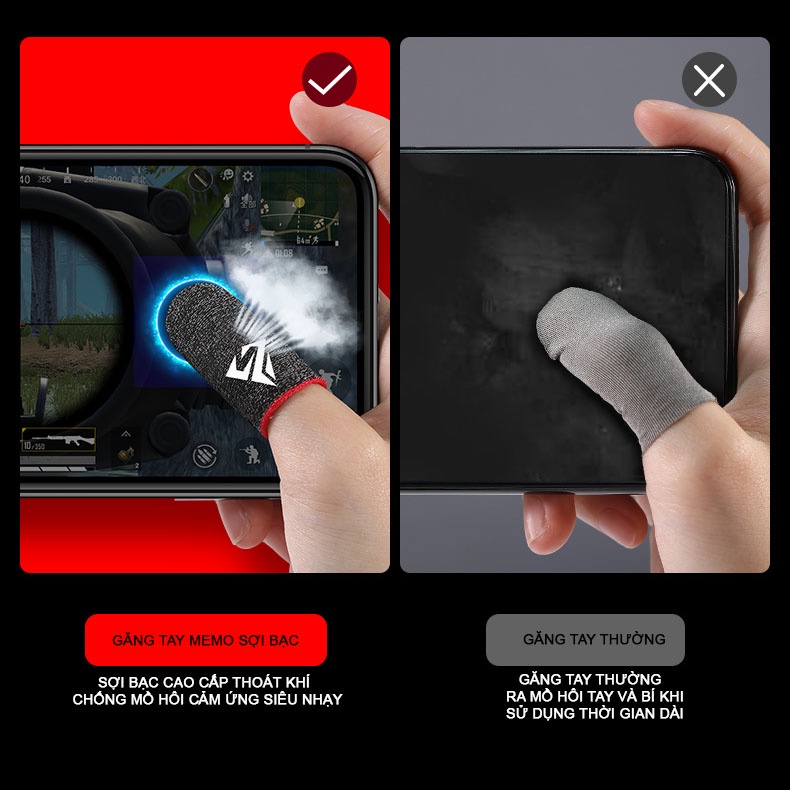 GĂNG TAY CHƠI GAME FF MEMO CAO CẤP LÀM TỪ SỢI BẠC CHỐNG MỒ HÔI TĂNG ĐỘ NHẠY CẢM ỨNG--------------------------