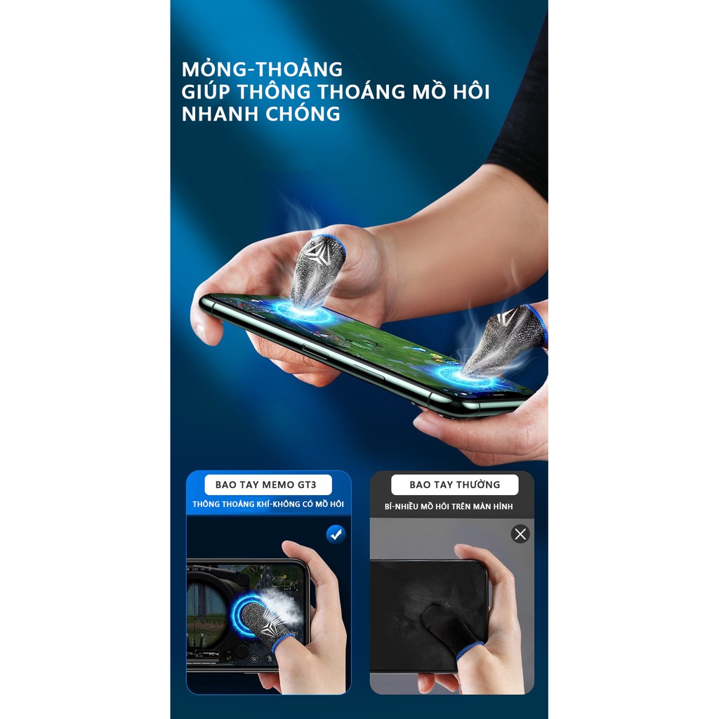 ✅Bao tay chơi game Memo , Shezi sợi bạc 24 kim cao cấp có tác dụng chống trơn trượt, chống mồ hôi tay giúp cải thiện kỹ năng chơi game và tránh các lỗi khi chơi. Găng tay cảm ứng với 120 điểm may cảm ứng /1 mét vuông , giúp bề mặt tiếp xúc giữa ngón tay và không khí được tăng lên 30% , diện tích thoát hơi nước tăng lên , bạn sẽ cảm thấy rất thoải mái kể cả chơi một thời gian dài.