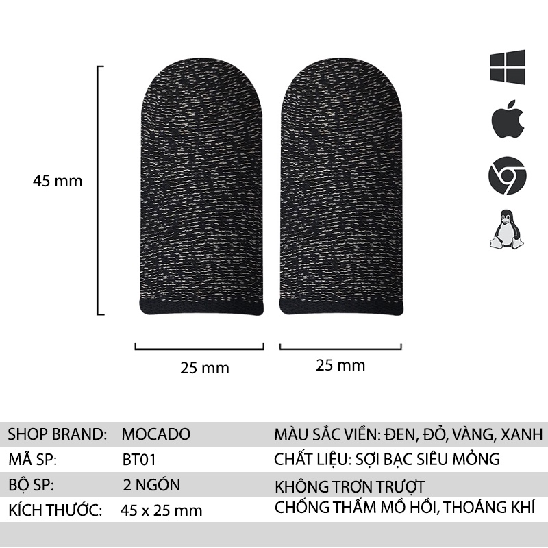 Bao tay chơi game siêu nhạy ff flydigi 4 5 pubg memo 2 ngón giá rẻ MOCADO BT01BAO TAY CHƠI GAME