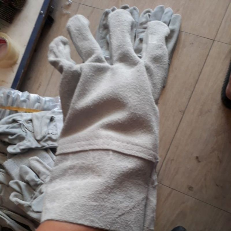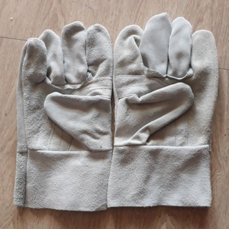 $ 1 đôi bao tay da bò dùng cho thợ hàn free size loại ngắn$ chất liệu da bò lộn. độ cứng vừa phải mềm ra khi sd