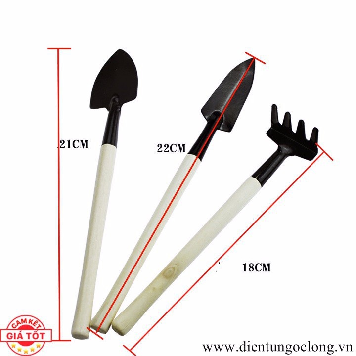 Gồm, 1 xẻng, 1 xúc, 1 cào, sử dụng tiện lợi, kiểu dáng đẹp, nhỏ gọn.