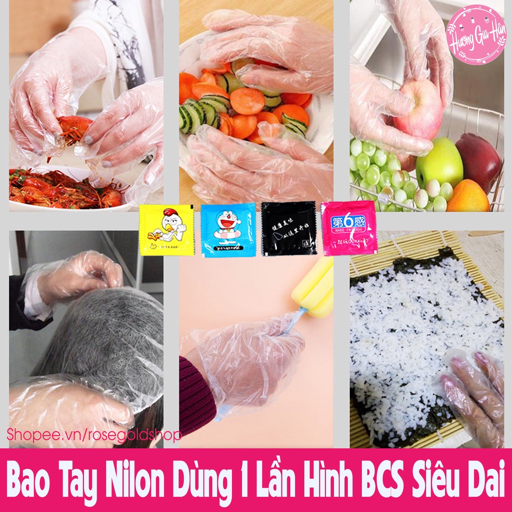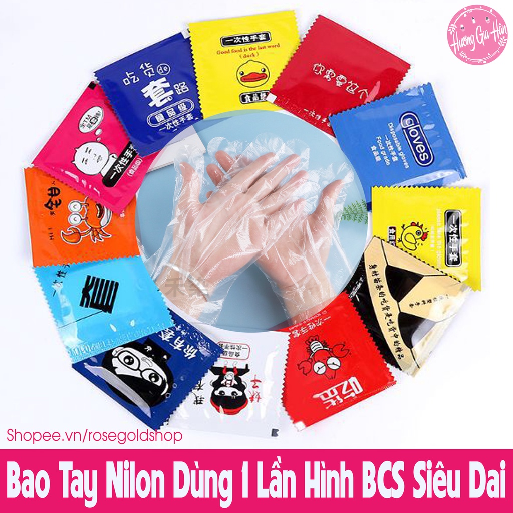 Chào mừng bạn đến với Hương Gia Hân shop (Rosegoldshop)Bao Tay Nilon Dùng 1 Lần Hình Bcs Rất Tiện Lợi Mang Theo, Siêu Dày Dặn Và Dai (2pc/gói)